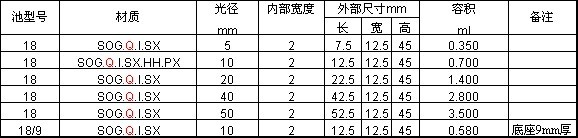 帶防水密封塞亞微量方形池,體積:10ul-160ul,Type 16R