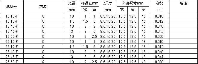 半微量熒光池Type 9-F和29-F,微量熒光池Type 18-F和Type 28-F