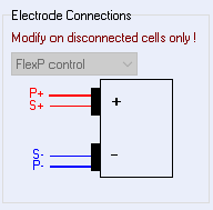 如果VMP3系列電化學工作站已經(jīng)連接了某個大電流儀器,那么Electrode Connections下面會出現(xiàn)相應的特殊的電極連接方式。比如,電化學工作站連接了Flex P系列的儀器,那么Electrode Connections下面會出現(xiàn)“FlexP control”的選項,如下圖: