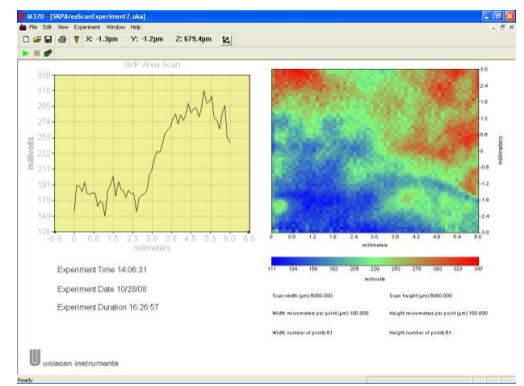 值得注意的是,也可以通過其他技術(shù)獲得形貌數(shù)據(jù),比如非觸式微區(qū)形貌測試系統(tǒng)(OSP)或者掃描電化學(xué)顯微鏡(SECM)的恒流技術(shù)。一旦獲得形貌,就可以用來解除任何其他掃描探針實驗中形貌的影響。比如:SECM、SKP、SVP(SVET)、SDS。