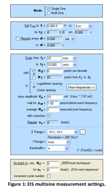 Multisine eis測量模式測試是一個避免某些電化學(xué)系統(tǒng)隨時間變化漂移的交流阻抗測量好方法。取決與測量體系,multisine eis測量模式可以在保證與single sine模式同樣精度的情況下,比原先的測量速度快3至4倍。