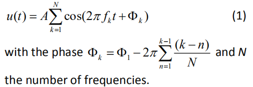 Multisine測量定義為由不同頻率的相同振幅A及不同相角φ正弦波總和u(t)。