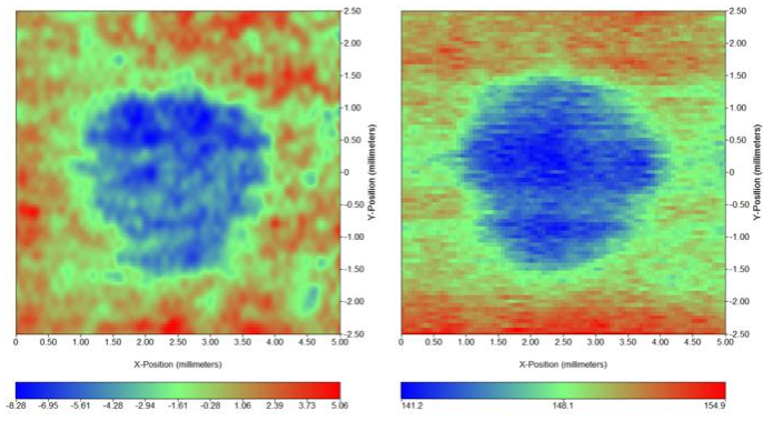 本文演示的是一個不是特別水平的SKP樣品,設(shè)備沒有設(shè)置成提取有效數(shù)據(jù)的狀態(tài),實驗結(jié)果很糟糕。處理后的數(shù)據(jù)顯示在掃描中心附近有一個小壓痕。為了進(jìn)行比較,還做了進(jìn)一步的檢查。