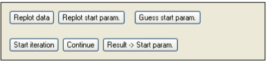 根據(jù)用戶的特殊條件(逼近材料、電流抵消、研究員的認識等)選擇方程式后,最好點擊擬合命令窗口中的“Guess start parameters”然后點擊“Start iteration”開始實驗(圖9)?!癎uess start parameters”用一個算法分析曲線,試圖找到接近最終值的開始值。
