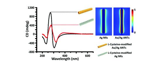 貴金屬納米結(jié)構(gòu)與手性分子的耦合在紫外-可見光譜范圍內(nèi)產(chǎn)生了強(qiáng)烈的手性光學(xué)響應(yīng)。本文通過半胱氨酸與Au/Ag納米管偶聯(lián),制備了半胱氨酸修飾的Au/Ag合金納米管(ANTs)。手性反應(yīng)強(qiáng)烈依賴于半胱氨酸的手性,表現(xiàn)出明顯的鏡像行為。與Ag-或Au-半胱氨酸手性雜化納米棒相比,半胱氨酸修飾的Au/Ag納米粒子具有更高的手性光學(xué)響應(yīng)。誘導(dǎo)的CD信號出現(xiàn)在Au/Ag ANTs的帶間吸收區(qū)而不是局部表面等離子體子帶,這既可以歸因于Au/Ag螞蟻表面延伸的螺旋網(wǎng)絡(luò)構(gòu)象,也可以歸因于等離子體納米管的近場增強(qiáng)效應(yīng)。這證實了庫侖相互作用誘導(dǎo)了半胱氨酸與Au/Ag ANTs之間的偶聯(lián),使得半胱氨酸分子在Au/Ag ANTs表面形成一個擴(kuò)展的螺旋網(wǎng)絡(luò)。此外,半胱氨酸修飾的Au/Ag ANTs由于手性活性中心的存在和大基團(tuán)的空間效應(yīng),在催化電化學(xué)反應(yīng)中對氨基酸也表現(xiàn)出良好的手性識別性能。