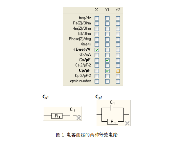 根據(jù)預(yù)想的模型電路,計(jì)算兩種類型的電容,Cs或Cp。電容Cs對(duì)應(yīng)于R+C(串聯(lián))電路的電容,Cp對(duì)應(yīng)于R/C(并聯(lián))電路的電容(圖1)。