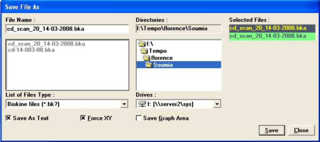 3.保存數(shù)據(jù)文件。選擇主界面的File菜單下的Save As,出現(xiàn)圖4界面。選擇要保存文件的文件夾位置,給文件命名,勾選Save As Text和force XY,然后點擊Save按鈕,文件保存到指定的文件夾中。此文件可用記事本程序打開。
