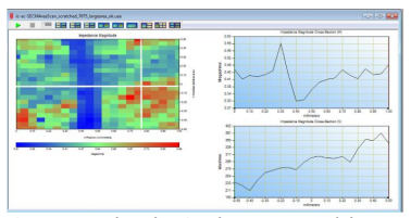 圖3是一個顯示阻抗的模板。左邊為3D圖窗口(面掃描圖),右邊是對應(yīng)的2D圖窗口(線掃描、截面、光譜、快速傅里葉變換),上方的圖與水平截面一致,下方的圖與垂直截面一致。