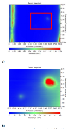 另一個有意思的工具是調(diào)整數(shù)據(jù)的大小??梢赃x擇只顯示一部分數(shù)據(jù),只突出最感興趣的特性。圖10顯示了兩幅圖:(a)是原圖;(b)是同一張圖,通過調(diào)整對比度突出感興趣的特性。