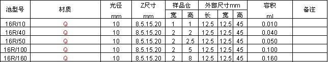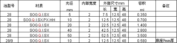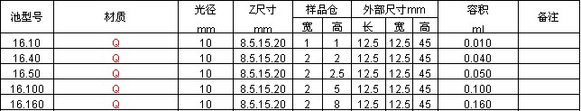 帶防水密封塞亞微量方形池,體積:10ul-160ul,Type 16R