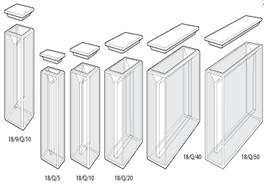 方形池可應(yīng)用于大多數(shù)紫外/可見區(qū)域的常規(guī)分析。最常規(guī)的類型的池子,均為兩面透光并且符合國(guó)際標(biāo)準(zhǔn)尺寸。10mm光程尺寸可以適用于絕大多數(shù)使用方形池的儀器。光程從1mm至100mm可選。您需查閱您儀器的使用手冊(cè)來確定是否需要一個(gè)用于更長(zhǎng)光路比色池的池支架。