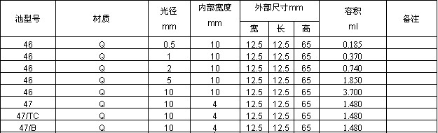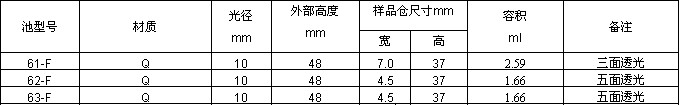半微量熒光池Type 9-F和29-F,微量熒光池Type 18-F和Type 28-F