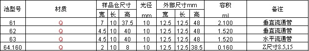 半微量和亞微量恒溫比色池,Type 61,62,63,64