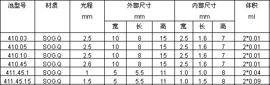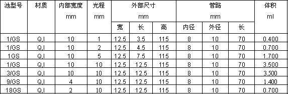 帶有石英-耐熱玻璃分級(jí)密封柱方形池,Type 1,3,9,18