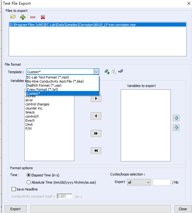很多用戶會(huì)直接選擇以上兩種簡(jiǎn)單、直接的方法來(lái)導(dǎo)出圖片和數(shù)據(jù),而忽略了EC-Lab軟件自帶的導(dǎo)出txt格式數(shù)據(jù)文件的功能。