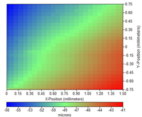 圖5為原始形貌圖和差值處理后的形貌圖??梢钥闯鰳悠吩?.5mm范圍內(nèi)傾斜約15?m。SECM中探針到樣品的距離直接與導(dǎo)體上測(cè)試的電流成正比,與絕緣體上測(cè)得的電流成反比。如果不校正傾斜,電流測(cè)量會(huì)受影響。雖然這種影響可以在測(cè)量結(jié)束后通過(guò)掃描電化學(xué)工作站M470軟件的“Tilt Correction”進(jìn)行校正,但是這對(duì)于探針到樣品距離改變引起的相反的變化是無(wú)效的。