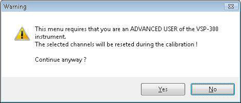 1. EC-Lab軟件中,Tools→channel calibration,出現(xiàn)下面的對(duì)話(huà)框,選Yes。