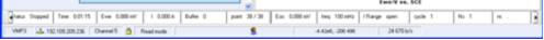 狀態(tài)欄底色出現黃色,一般代表此時實驗測試的過程為氧化過程,或者為充電過程。比如CV測試中,氧化反應階段,軟件狀態(tài)欄就顯示黃色;或者GCPL過程中,充電過程狀態(tài)欄也顯示為黃色。