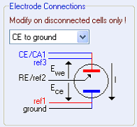 EC-Lab軟件中,添加實驗后,在左側Safety/Adv. Settings下有一個Electrode Connections部分,其中可以選擇standard、CE to ground或者其他大電流儀器的連接方式(如下圖)。