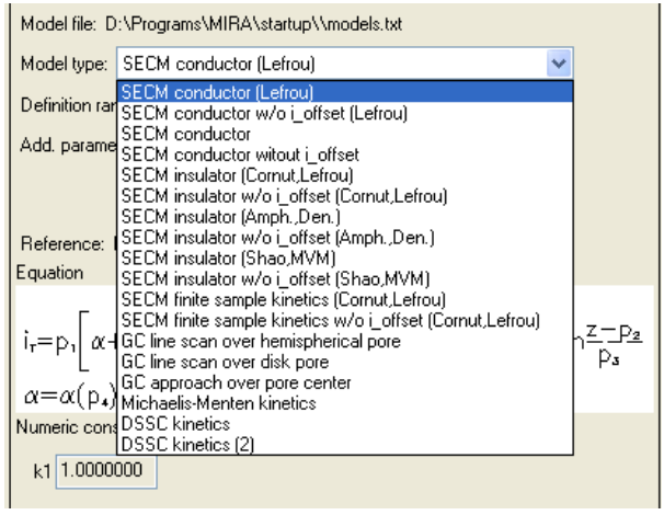 MIRA最有意思的工具是可以擬合dc-SECM逼近曲線,獲得實驗參數(shù)和反應動力學。