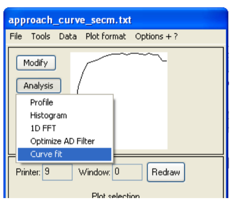 可以用數(shù)據(jù)顯示窗口左邊的Analysis按鈕進入曲線擬合工具(圖7)。